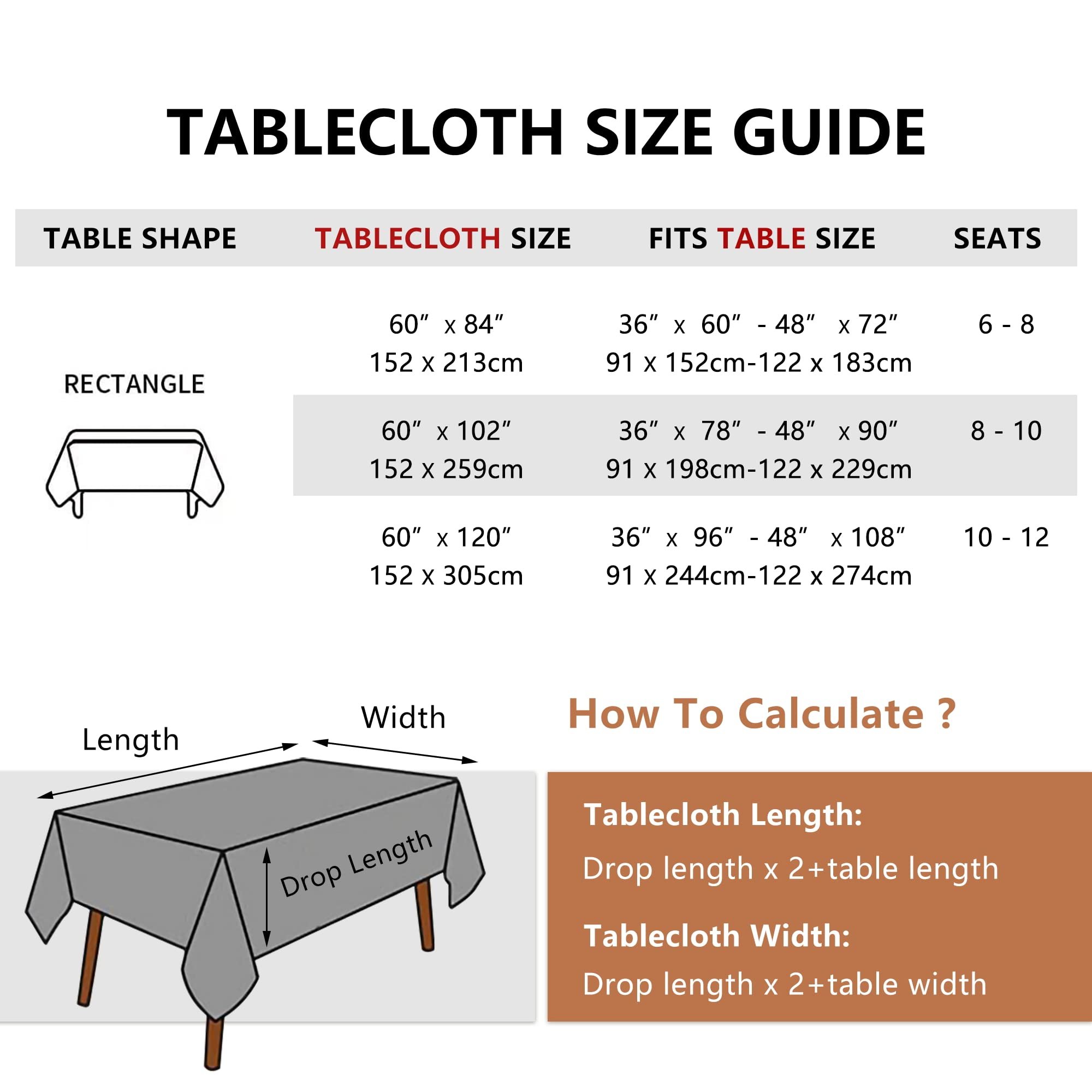 A 60×102 tablecloth is perfect for a table measuring 30×78 or 36×84 inches. This size offers a nice overhang, giving your table a polished look. When choosing a tablecloth, remember that 60×102 fits what size table is ideal for a rectangular dining table. It provides both practicality and aesthetics. Remember to measure your table accurately to ensure the perfect fit every time.